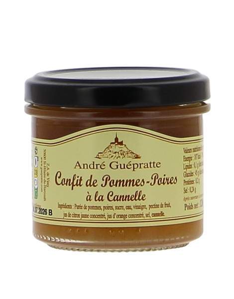 Confit de pommes-poires à la cannelle Fabrication artisanale André Guépratte dans la Manche (50) Pot en verre 120g