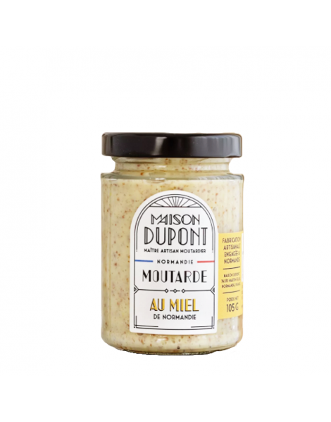Moutarde artisanale au miel doux et parfumé.Élaborée par la Maison Dupont, spécialiste normand.Format pratique de 105g.Saveur équilibrée : mariage subtil entre piquant et douceur.Idéal pour assaisonner viandes, poissons, légumes ou vinaigrettes.