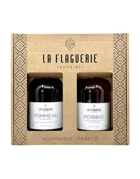 Ce coffret de spiritueux contient : 1 Pommeau de Normandie AOC 50cl 17% 1 Poirino (apéritif à base de poire et Calvaods) 50cl 15%