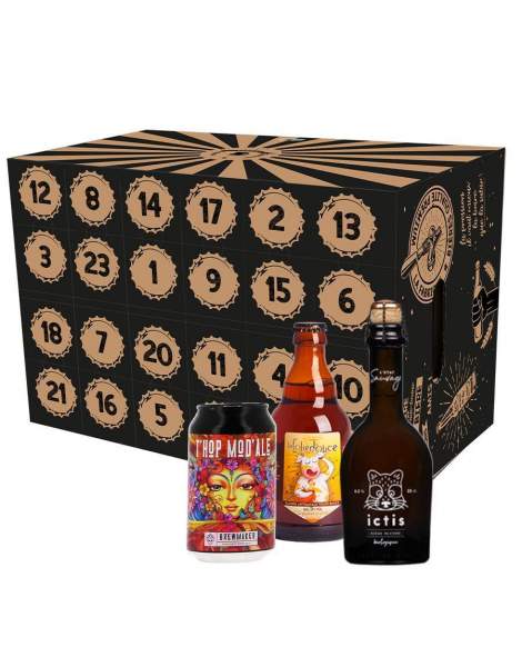 Calendrier de l'Avent confectionné par nos cavistes Une sélection de 24 bières blonde bières artisanales et normandes Bouteilles de 33cl et principalement des bières blondes Liste des brasseurs : Brasserie de l'Odon, Brasserie de Sutter, Brasserie de la Lie, Bière la Thörgoule, Normandy Beer Factory, Brewmaker, la Cotentine, Travailleurs de l'amer...