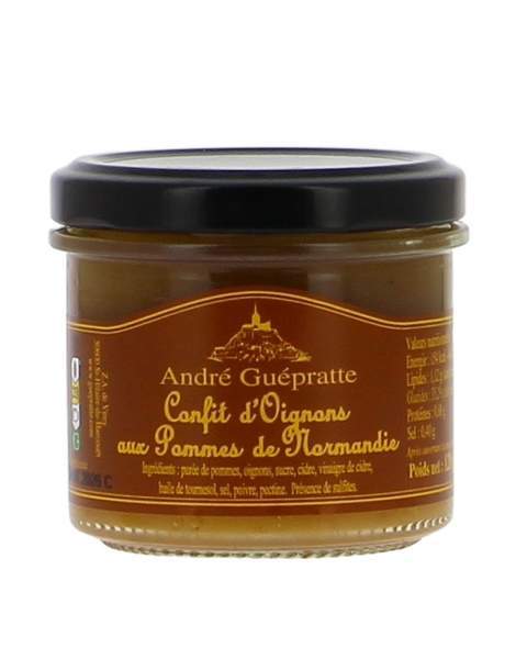 Confit d'oignons et pommes de Normandie au cidre Fabrication artisanale André Guépratte dans la Manche (50) Pot en verre 120g