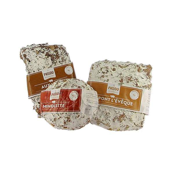 3 x 220 g 38,43 € / kgLot de 3 saucissons sec sans peau : Mimolette, noisettes, Pont-l'évêque du producteur “Le philou normand”