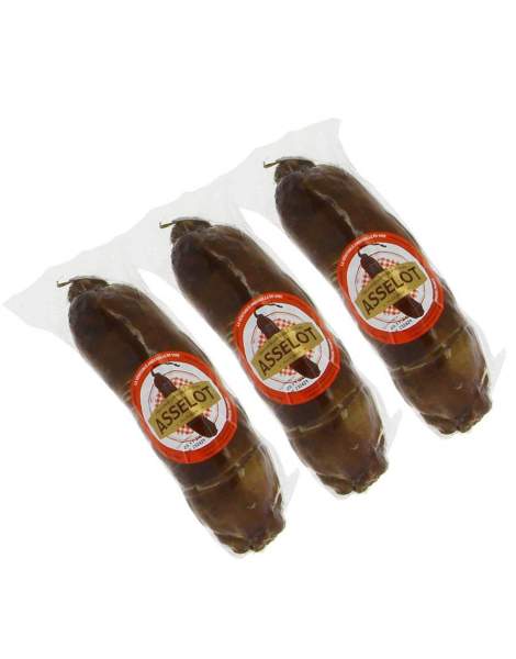Véritable Andouille de Vire Asselot par lot de 3 Fabrication artisanale Maison Asselot à Vire (Calvados) Environ 320 g (+ ou - 10%) l'andouille ou équivalent en morceaux