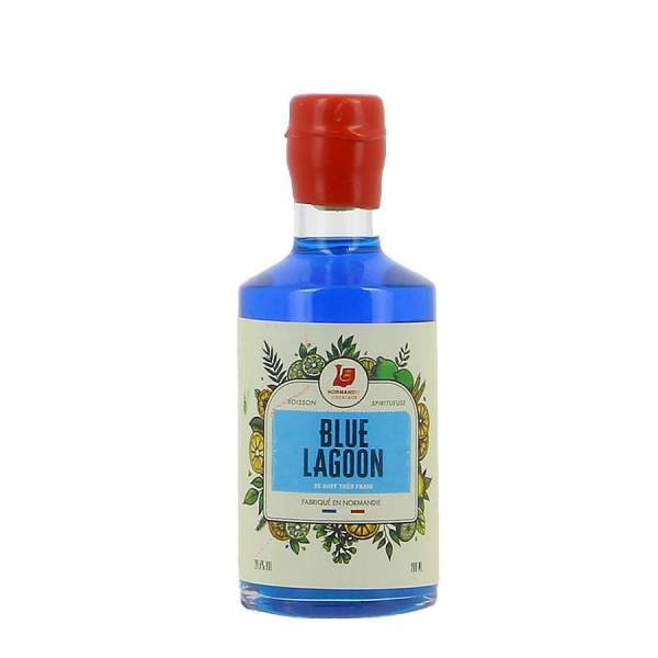 Cocktail Blue Lagoon (Vodka, triple sec, curaçao) Normandie Cocktails à Caen Fabrication artisanale Aloïs Rioux Bouteille en verre 70cl - vol 29,6%