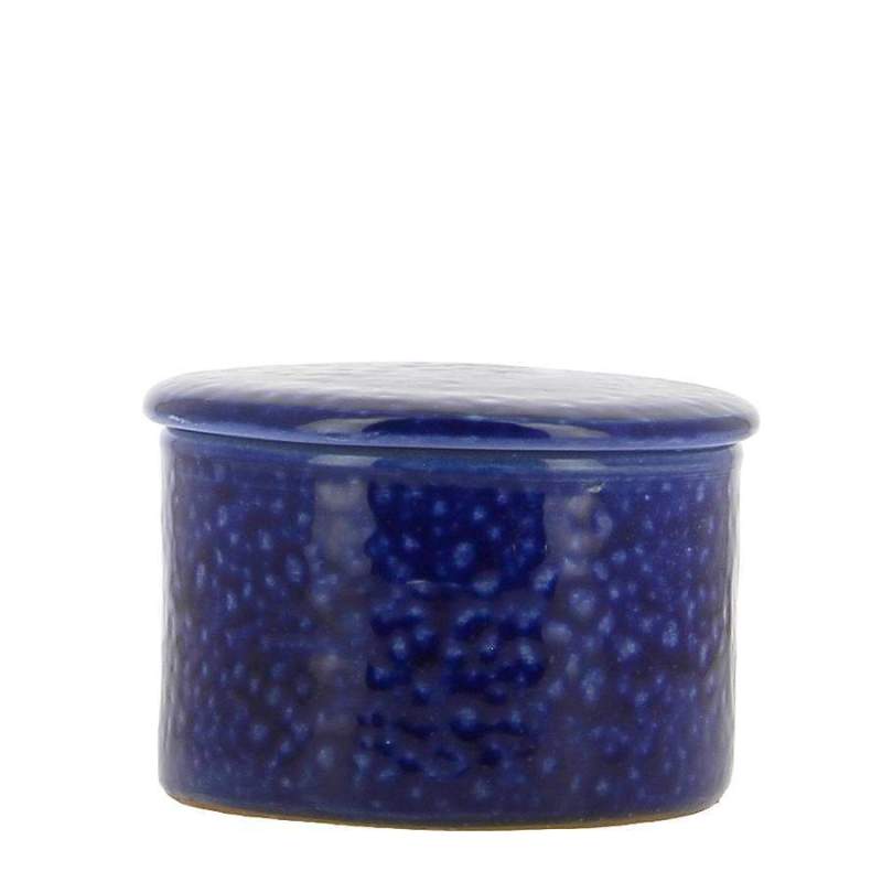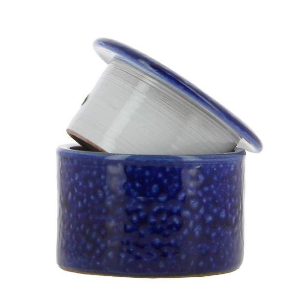 Beurrier conservateur à eau artisanalPoterie artisanale NormandePoterie Turgis à Noron dans le CalvadosEmail garanti sans plomb Contenance 350gCouleur bleu foncé Largeur: 13,00 cm Hauteur: 11,50 cm