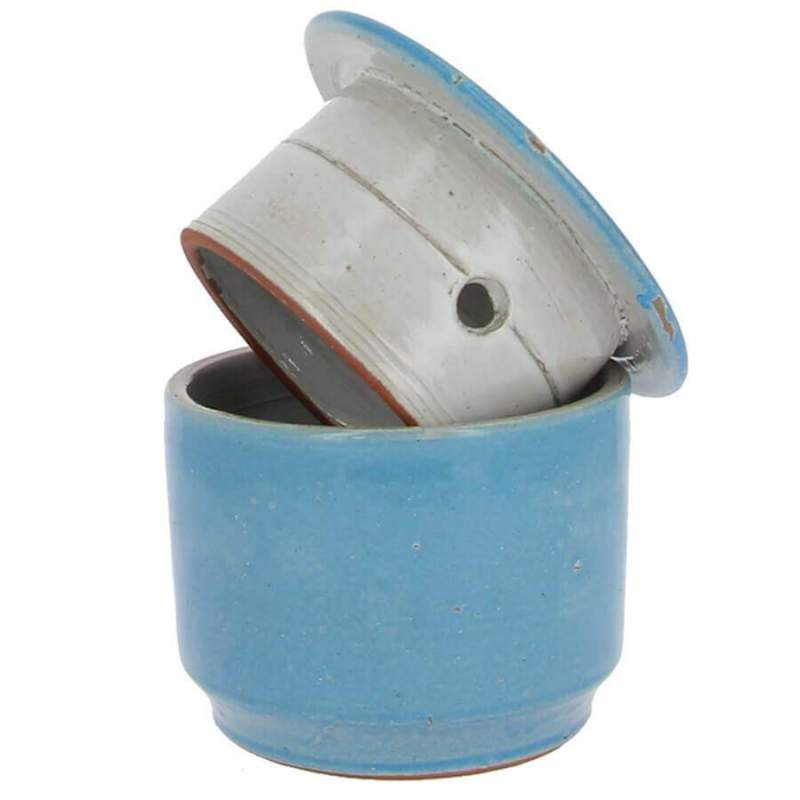 Beurrier conservateur à eau artisanalPoterie artisanale NormandePoterie Turgis à Noron dans le CalvadosEmail garanti sans plomb Contenance 350gCouleur bleu foncé Largeur: 13,00 cm Hauteur: 11,50 cm