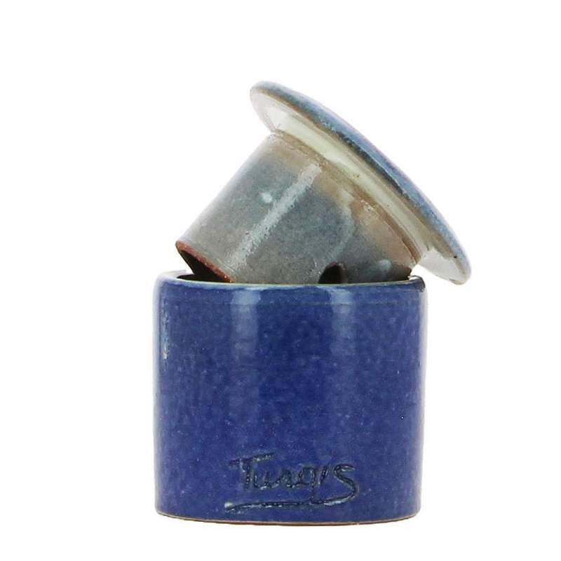 Beurrier conservateur à eau artisanalPoterie artisanale NormandePoterie Turgis à Noron dans le CalvadosEmail garanti sans plomb Contenance 350gCouleur bleu foncé Largeur: 13,00 cm Hauteur: 11,50 cm