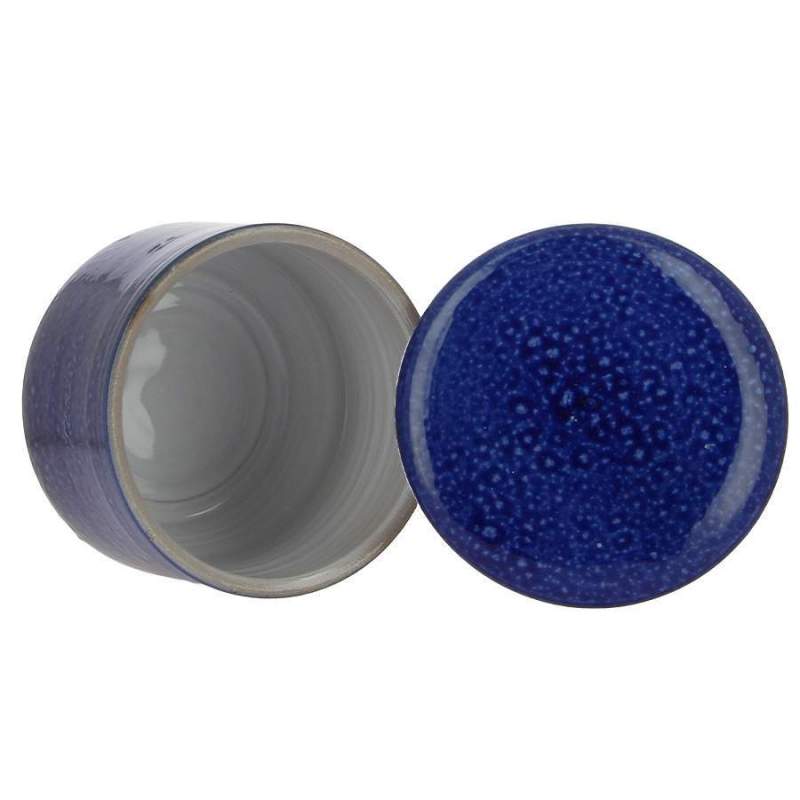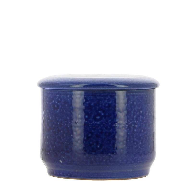 Beurrier conservateur à eau artisanalPoterie artisanale NormandePoterie Turgis à Noron dans le CalvadosEmail garanti sans plomb Contenance 350gCouleur bleu clair Largeur: 13,00 cm Hauteur: 11,50 cm