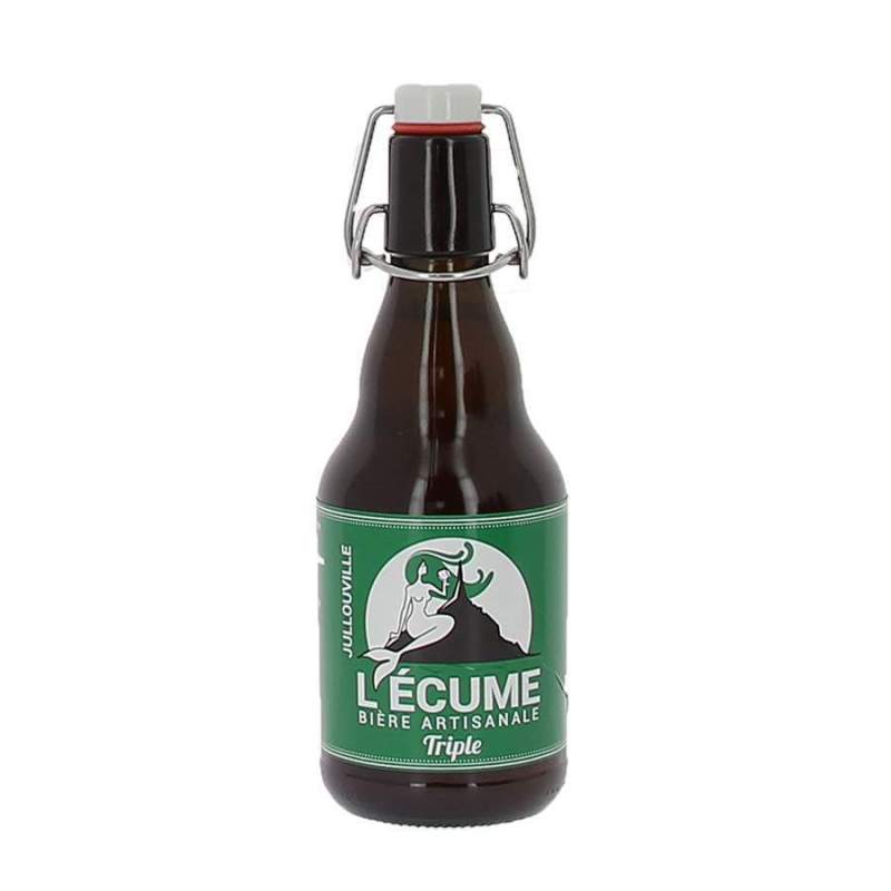 Bière L'écume triple Bouteille verre 75cl Brasserie artisanale l'écume des falaises Jullouville dans la Manche Tarifs dégressifs par lots de 3, 6 ou 12 bouteilles La bière L'écume blonde existe également en bouteille 33cl.