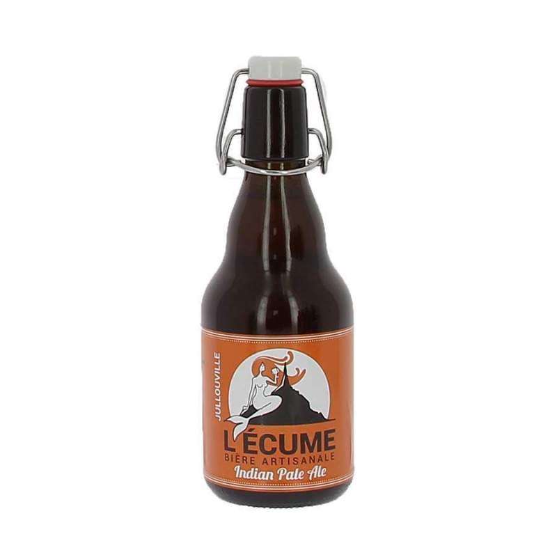 Bière L'écume IPA Bouteille verre 75cl Brasserie artisanale l'écume des falaises Jullouville dans la Manche Tarifs dégressifs par lots de 3, 6 ou 12 bouteilles La bière L'écume blonde existe également en bouteille 33cl.