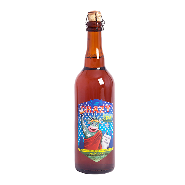 La Crazy IPA de la Brasserie De Sutter est une bière blonde artisanale à la personnalité houblonnée et au caractère rafraîchissant. Avec ses 6,5% d'alcool, elle mêle amertume marquée et douceur maltée, offrant un équilibre parfait en bouche. Les arômes dominants évoquent les agrumes et les fruits tropicaux, accompagnés de subtiles notes florales et résineuses. Conçue pour séduire les amateurs de bières intenses, cette IPA est idéale à partager entre amis, grâce à son généreux format de 75cl.