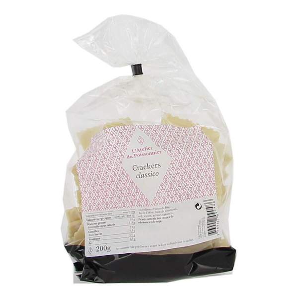 Les crackers nature de l'Atelier du Poissonnier à Agon-Coutainville est un biscuit salé idéal pour déguster les rillettes de poisson. Ces crackers croustillantes sont idéales pour accompagner vos apéritifs.