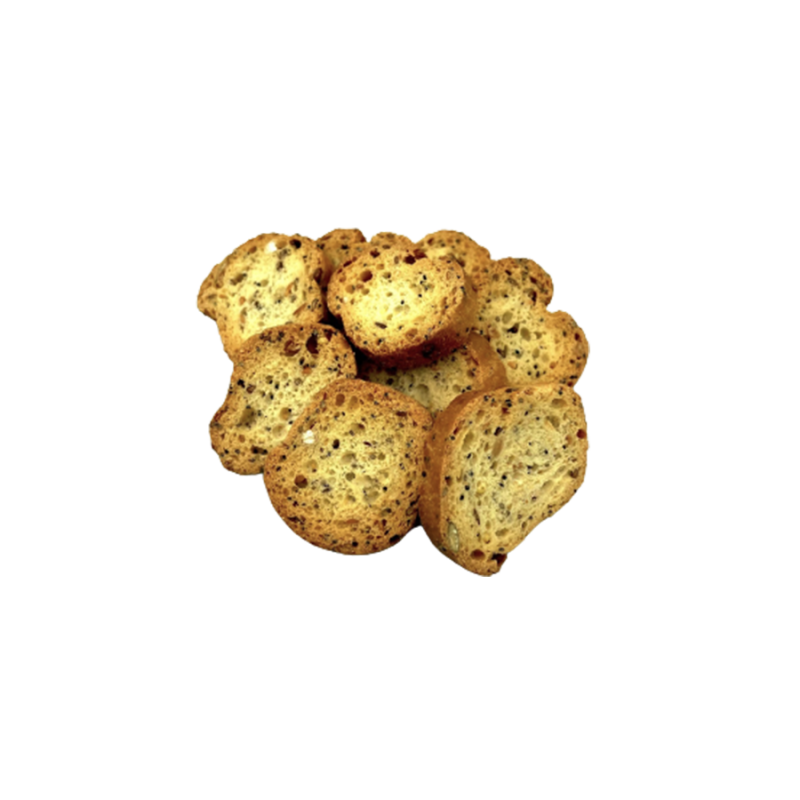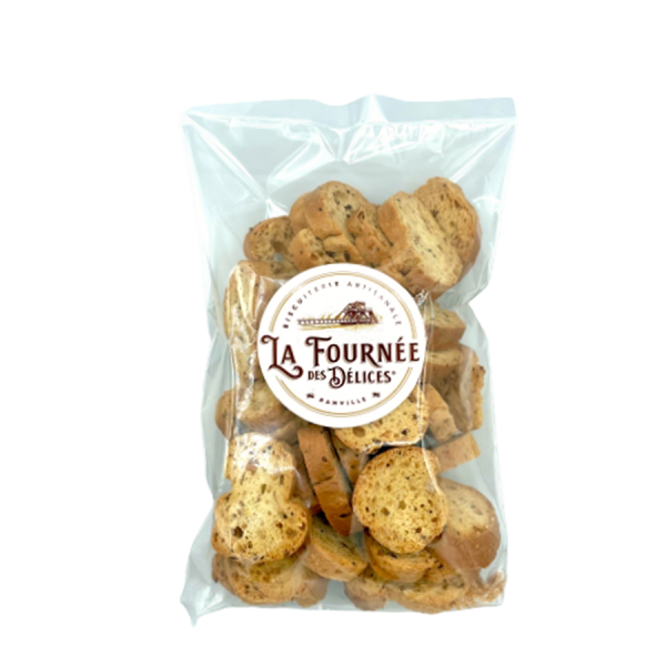 Les mini toasts aux 8 céréales de La Fournée des délices sont un véritable délice pour les papilles. Ces petites merveilles sont fabriquées à partir d'une farine de blé. Les différentes céréales choisies pour leur saveur unique et leur richesse nutritionnelle qui ont été utilisées dans la recette incluent le sésame, le lin brin et le jaune, le tournesol, le millet, le pavot bleu et la courge.