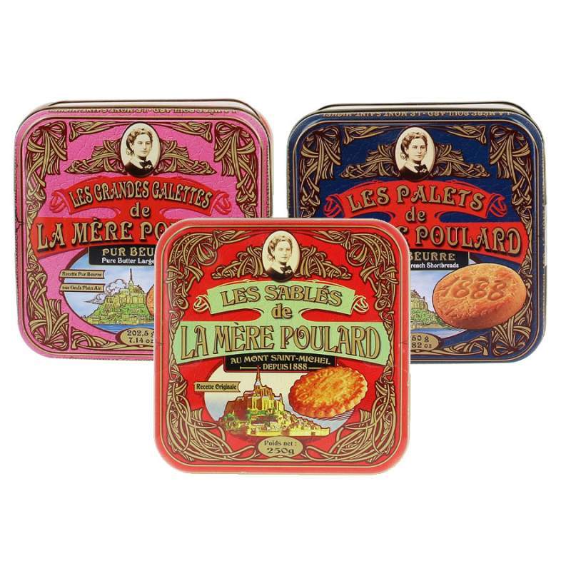 Lot de palets de la Mère Poulard Biscuiterie de la Mère Poulard Fabriqué artisanalement à Saint-Étienne-en-Coglès 3 Boites fers 250g