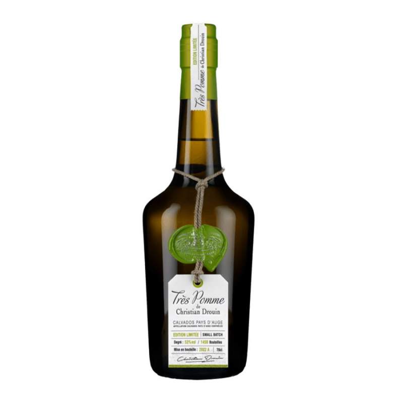 Le Calvados très pomme est un Calvados cask finish de la gamme expression élaboré par la famille Drouin. Ce Calvados Pays d'Auge tire son originalité par son affinage en fût de vieux foudres (très grands tonneaux en bois).
