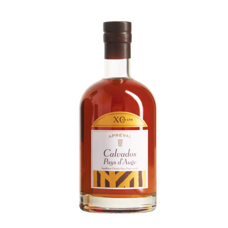 Le calvados XO 18 ans du Domaine d’Apreval est un Calvados Pays d’Auge AOC longuement élevé en fûts de chêne pendant plus de 18 ans. Ce temps de vieillissement confère à l’eau-de-vie une robe dorée aux reflets ambrés, témoignage de la concentration de ses arômes et de sa richesse en bouche.