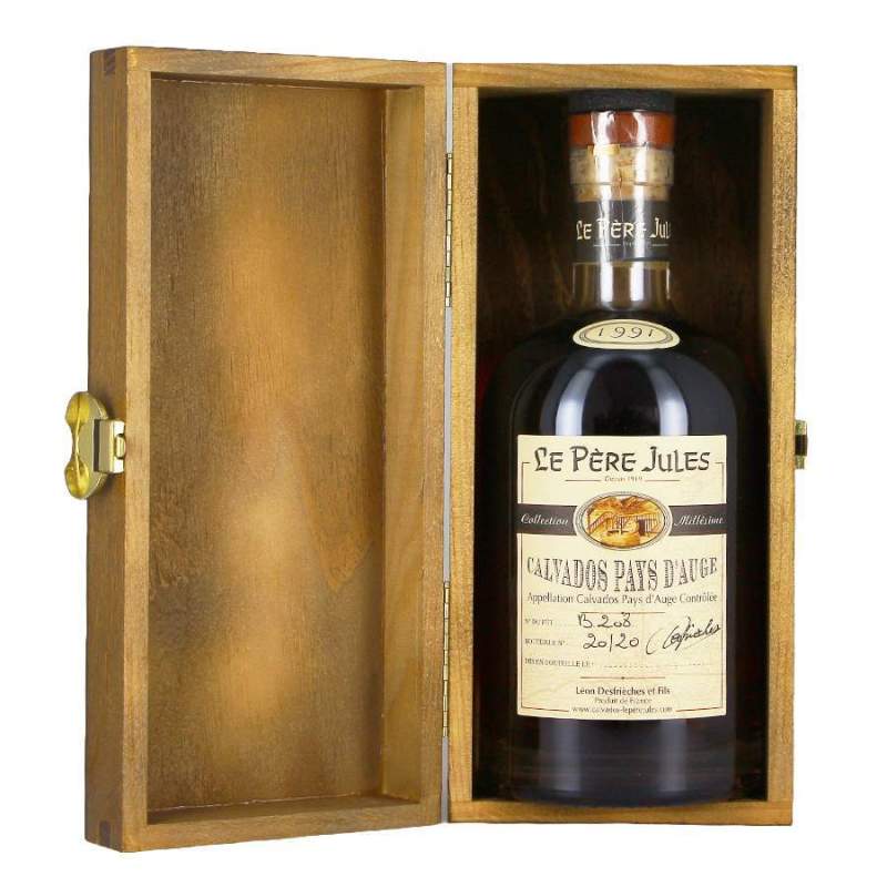 Découvrez le Calvados AOC Pays d'Auge millésime 1991, une création d'exception de la maison Le Père Jules, située à Saint-Désir-de-Lisieux. Issu du savoir-faire familial des Desfrieches (père, fils et petits-fils), ce calvados authentique est élaboré à partir des meilleures pommes de Normandie. Ce millésime dévoile des arômes riches et complexes, témoins d'un vieillissement soigneux. Présenté en bouteille de 70cl, il saura séduire les amateurs de spiritueux d'exception.