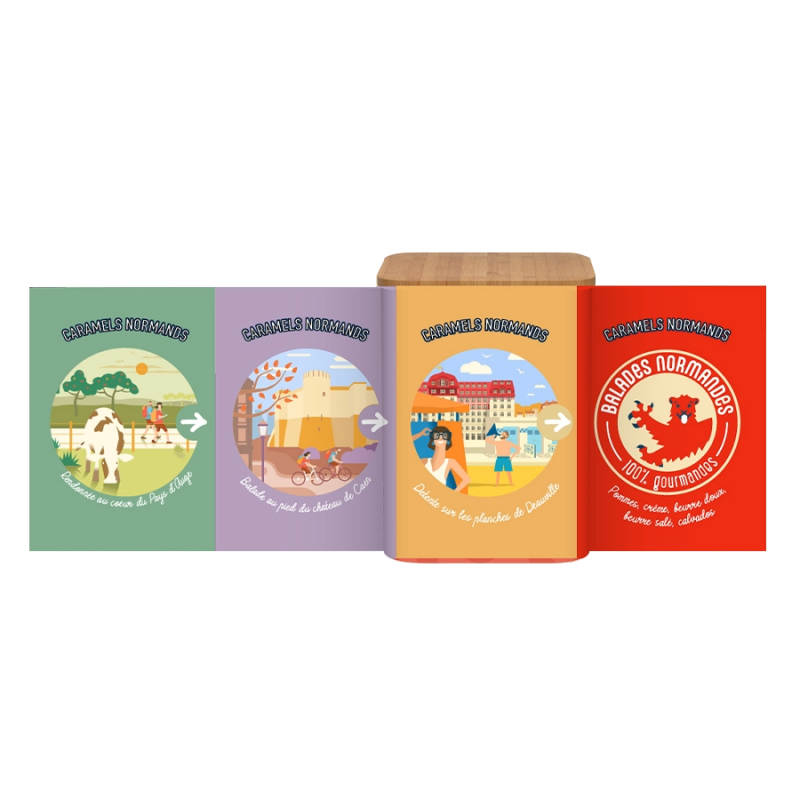 Plongez dans l'essence de la Normandie avec notre Boîte Métal Assortiment de Caramels au Beurre Salé Balades Normandes de 200g. Une invitation au plaisir, que ce soit en cadeau attentionné ou en souvenir gourmand.