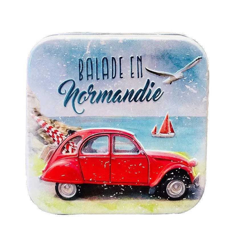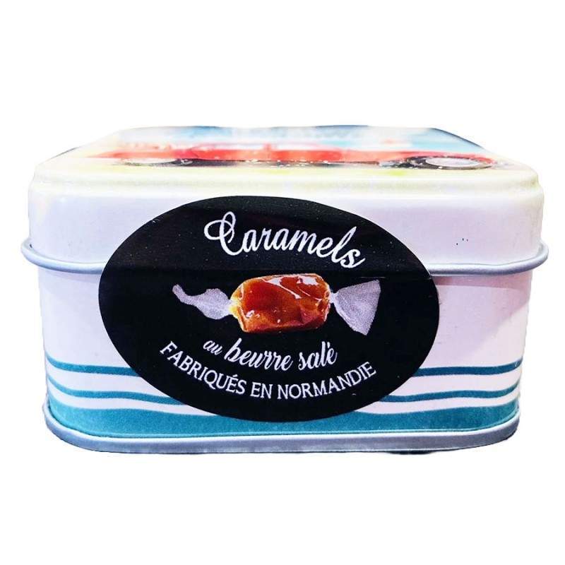 Caramels au beurre salé 130g Boite collector en fer réutilisable Fabrication artisanale normande Illustration "Au cœur de la Normandie"
