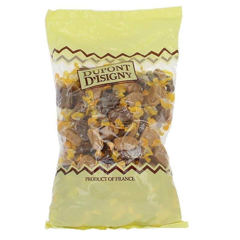 Assortiment de Caramels tendres Saveurs : chocolat, vanille, café et noisette Confiserie Dupont d'Isigny Sachet de 250g