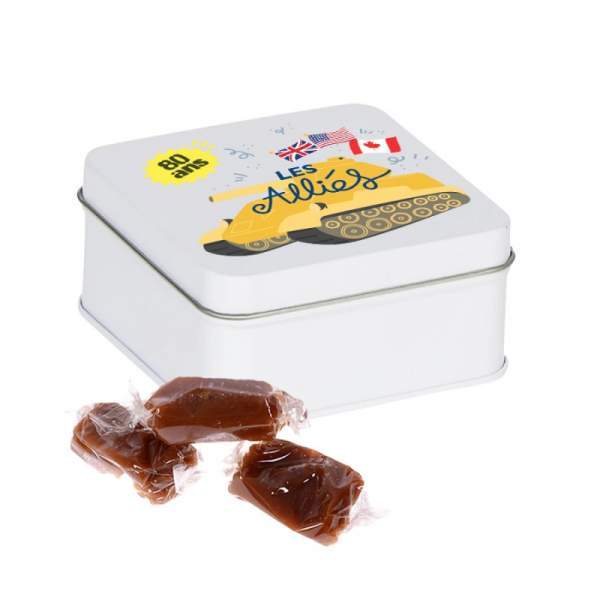 Les caramels onctueux de Normandie, faits de beurre demi-sel et de fleur de sel de Guérande, fondent délicieusement dans la bouche. La boîte en métal qui les renferme peut être conservée en tant que souvenir des 80 ans du D-Day, car elle est ornée d'une illustration de tank en hommage aux soldats alliés. Ces douceurs raviront les amateurs de sucreries, et cette édition spéciale constitue un petit cadeau parfait pour les passionnés de la Normandie ou d'histoire.