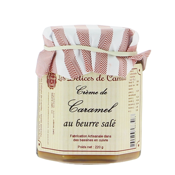 La crème de caramel au beurre salé des Délices de Camille est une pure gourmandise normande, préparée avec du beurre de baratte et une pointe de fleur de sel, selon une cuisson douce et maîtrisée en chaudron de cuivre. Sa texture est onctueuse, fondante et parfaitement équilibrée entre douceur sucrée et salinité subtile. Un vrai plaisir régressif pour petits et grands, à savourer à la cuillère… ou presque.