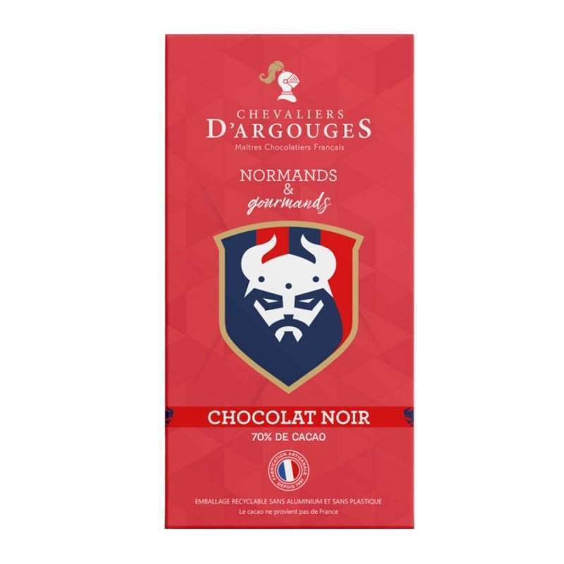 Les Chevaliers d'Argouges et le célèbre Stade Malherbe Caen collaborent pour nous proposer la tablette au chocolat noir 70% de cacao, au design normand. Cette référence saura plaire aux amateurs de football, tout en proposant un goût de chocolat noir intense. Cette tablette artisanale est confectionnée au sein de l'atelier normand des chevaliers d'Argouges. Elle est élaborée sans huile de palme et arrive dans un emballage respectueux de l'environnement, recyclable et dépourvue d'aluminium, par souci éco-responsable.