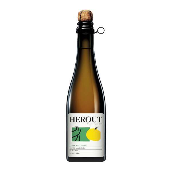Cidre sec de gastronomie 75cl cuvée 2019 Couleur entre jaune or et jaune orangé, effervescence fine Structure tanique affirmée, apportant des saveurs amères Arômes subtils avec des notes iodées au nez Belle amertume, d'une grande fraîcheur en bouche Maison Hérout, Verger de la chapelle à Auvers dans la Manche