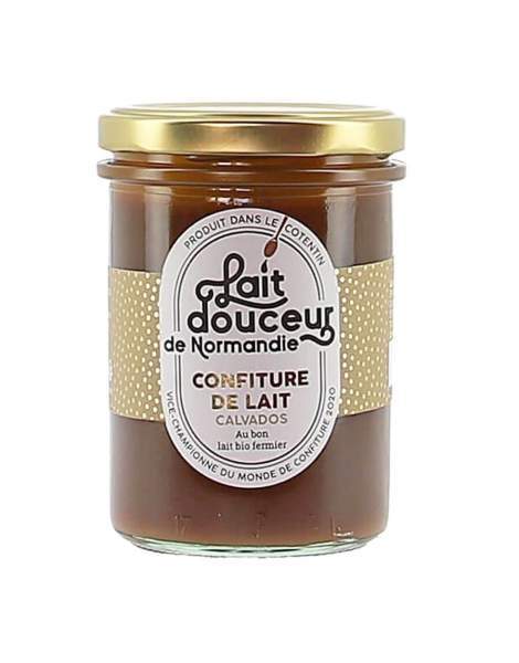 Confiture de lait au Calvados Pot en verre 240g Lait douceur de Normandie : vice championne du monde de confiture 2020 Au bon lait bio fermier