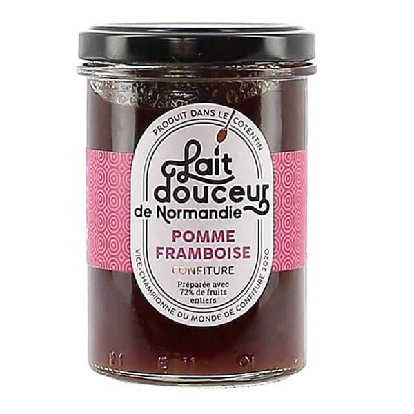 La confiture pomme-framboise de 240g de Lait douceur de Normandie est une création artisanale exquise. Elle combine la saveur sucrée et acidulée de la pomme et de la framboise pour une expérience gustative délicieusement normande.