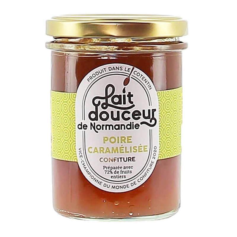 La confiture poire caramélisée de 240g de Lait Douceur de Normandie est une création artisanale exquise. Elle offre une véritable compotée de poires avec une note subtile de caramel, pour une expérience gustative normande douce et gourmande à souhait.