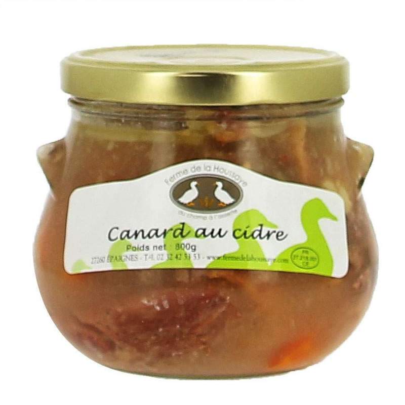Canard au Pommeau La houssaye bocal verre 800g (2 à 3 personnes) Fabrication fermière de Normandie Volailles élevées et transformées à la Ferme de La Houssaye Franck et Christelle LAVIGNE à Epaignes (Eure)