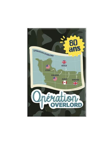 Magnet métal aimanté Illustration 80 ans du D-Day - Opération Overlord Souvenir de Normandie Dimensions : 5x7.5cm