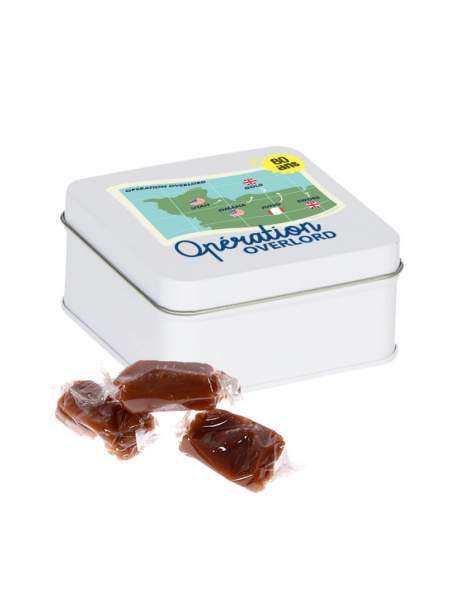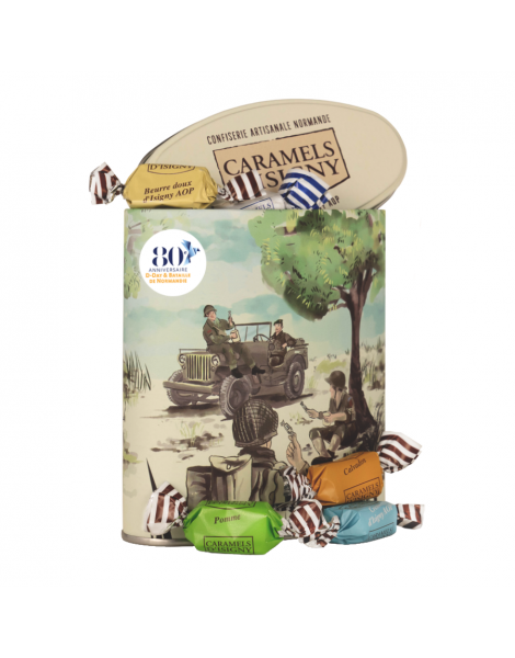 Caramels traditionnels 180g Fabrication artisanale Boite en fer réutilisable Illustration Débarquement D-Day