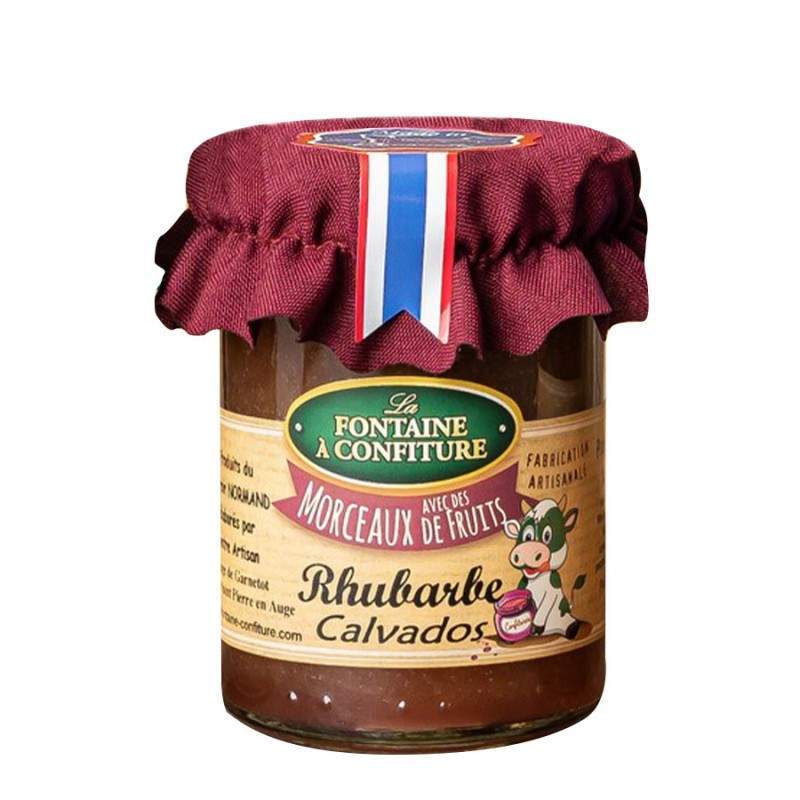 Dans cette recette, l'artisan normand a ajouté aux morceaux de rhubarbe, une pointe de Calvados de Normandie.