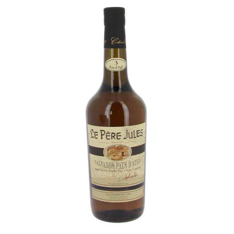 AOC Calvados Pays d'Auge de 3 ans Calvados Le père Jules à SAINT-DESIR-DE-LISIEUX (Calvados) alcool 41%vol - bouteille de 35cl Ce Calvados 3ans Le père Jules existe aussi en bouteille 70cl
