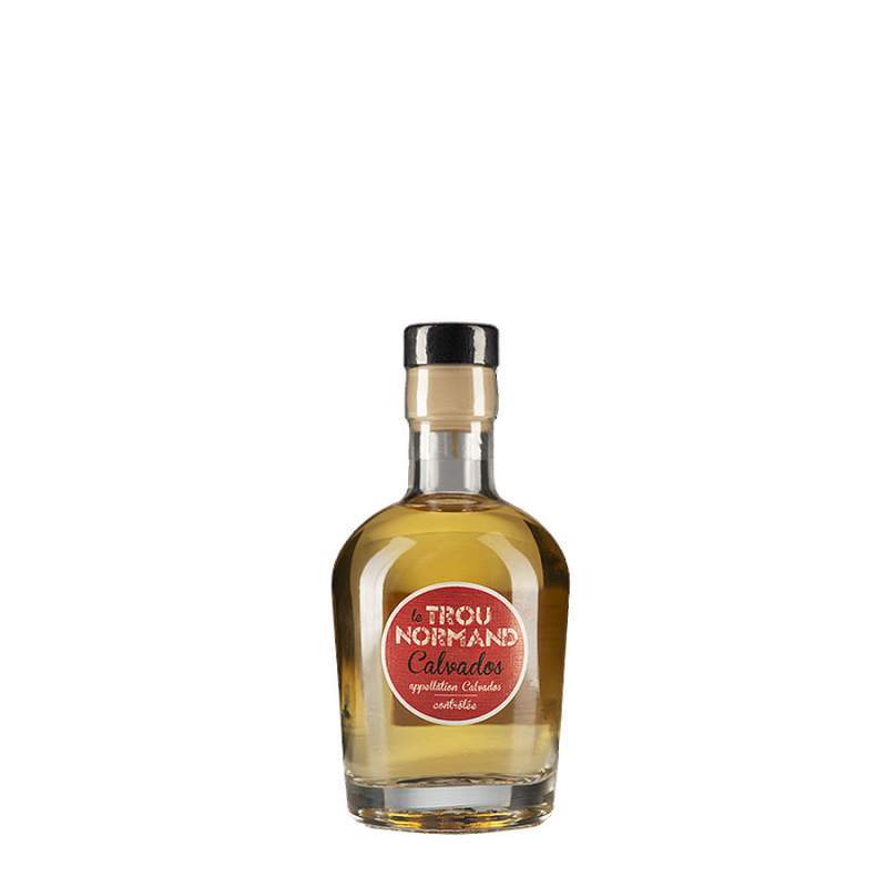 Le célèbre Trou Normand, coutume gastronomique traditionnelle de Normandie, consiste à servir entre 2 plats une petite dose de Calvados pour faciliter la digestion des convives. Le Trou Normand est une jolie petite bouteille de Calvados de 10cl avec un bouchon bois, idéal pour faire des petits cadeaux...