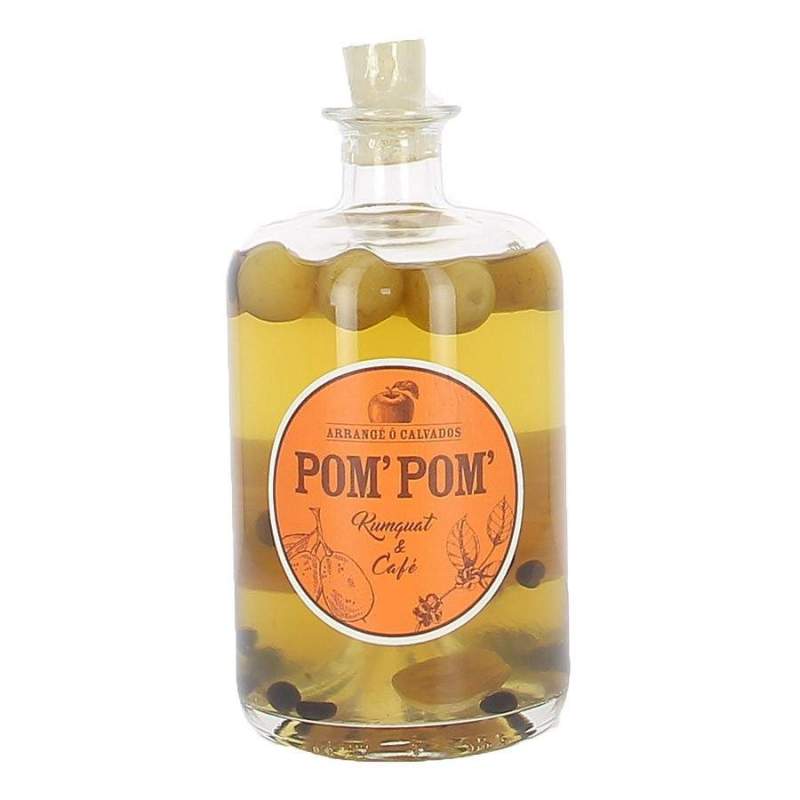 Le Calvados arrangés kumquat café Pom'Pom est une macération de Calvados AOC et de fruits élaborée par le Comptoir Havrais.