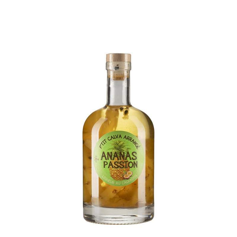 Calvados Arrangé fruits de la passion, mangue et ananas P'tit Calva arrangé, liqueur au calvados, chaleur tropicale en Normandie Macération artisanale 100% Normande P'tit Calva arrangé Retrouvez les P'tit Calva arrangé en lot de 3 bouteilles 50cl