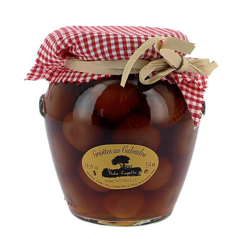 Griottes au Calvados 85cl Fabrication artisanale de la Manche Calvados Théo CAPELLE à Sotteville Existe également en 31,4cl et 58cl