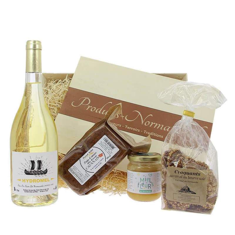 Panier garni Balade normandes Panier gourmand à déguster pour découvrir la Normandie Spécialités du terroir normand Emballé, prêt à offrir ou à faire expédier directement chez un ami