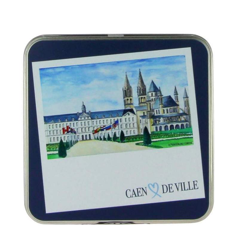 Découvrez une magnifique boîte en métal illustrée de la belle région normande. Avec son dessin en réalisée en aquarelle, cette boîte est parfaite pour offrir en souvenir d'un voyage à Caen!