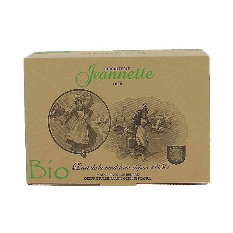 Madeleines nature bio Biscuiterie artisanale Jeannette Fabriqué à Démouville dans le Calvados Boite contenance 250g - soit 10 madeleines bio