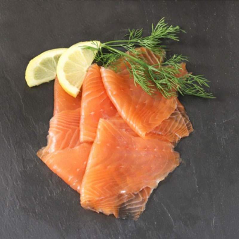 La qualité du travail de notre artisan fumeur nous permet de vous proposer un saumon fumé d'exception. La maîtrise du salage, le fumage léger et délicat, confèrent à nos saumons une finesse de goût et de texture, la matière première est magnifiée, et non masquée par des excès de sel et de fumage des saumons fumés industriels. À découvrir sans hésitations, et à déguster tout simplement, nature ou accompagné d'un pain de campagne et d'un peu de beurre de Normandie.