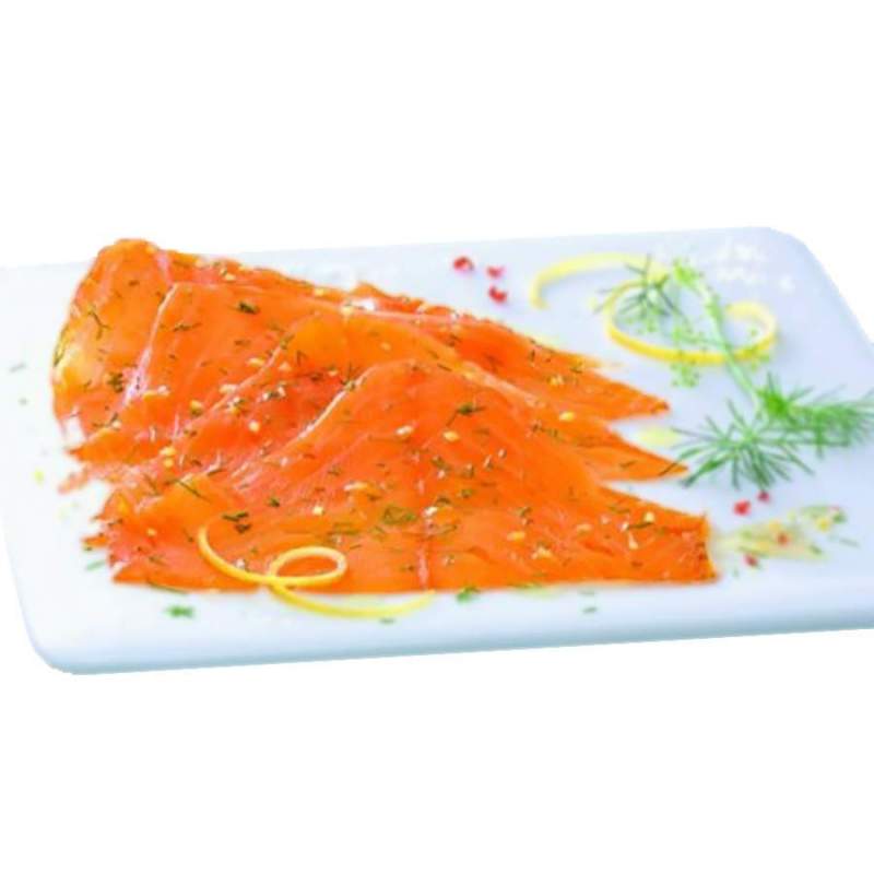 Saumon mariné à l'aneth fraîche tranché ou Gravlax