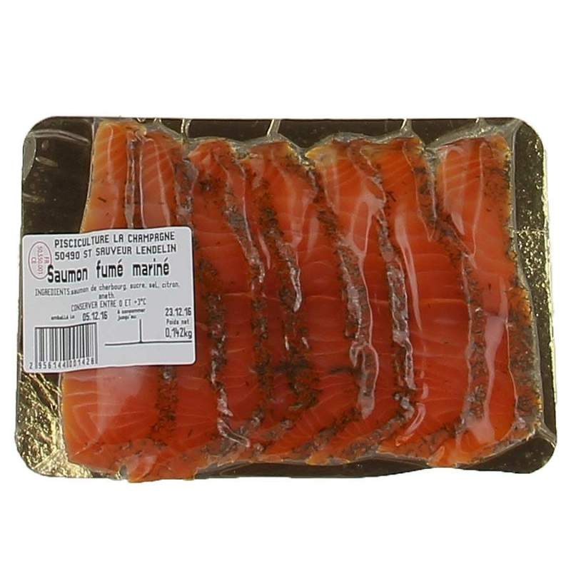 C'est dans la Manche, dans la grande rade de Cherbourg que sont élévés les saumons par Saumon de France. Ils sont ensuite préparés en filets de saumons fumés mariné à l'aneth tranchés. La Maison Saint Lô prend le relais et s'occupe du fumage artisanal. Les techniques de salage et de fumage qu'utilise la saumonerie sont ancestrales, et ça se sent dans la qualité de ces poissons fumés.