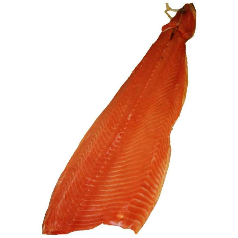 Saumon fumé nature non tranché Saumons Salmo salar élevés dans la grande rade de Cherbourg Artisan fumeur de Normandie Salé au sel sec - Fumé à la ficelle au bois de Hêtre Filet entier de 800g (+/- 10gr) DLC 20 jours
