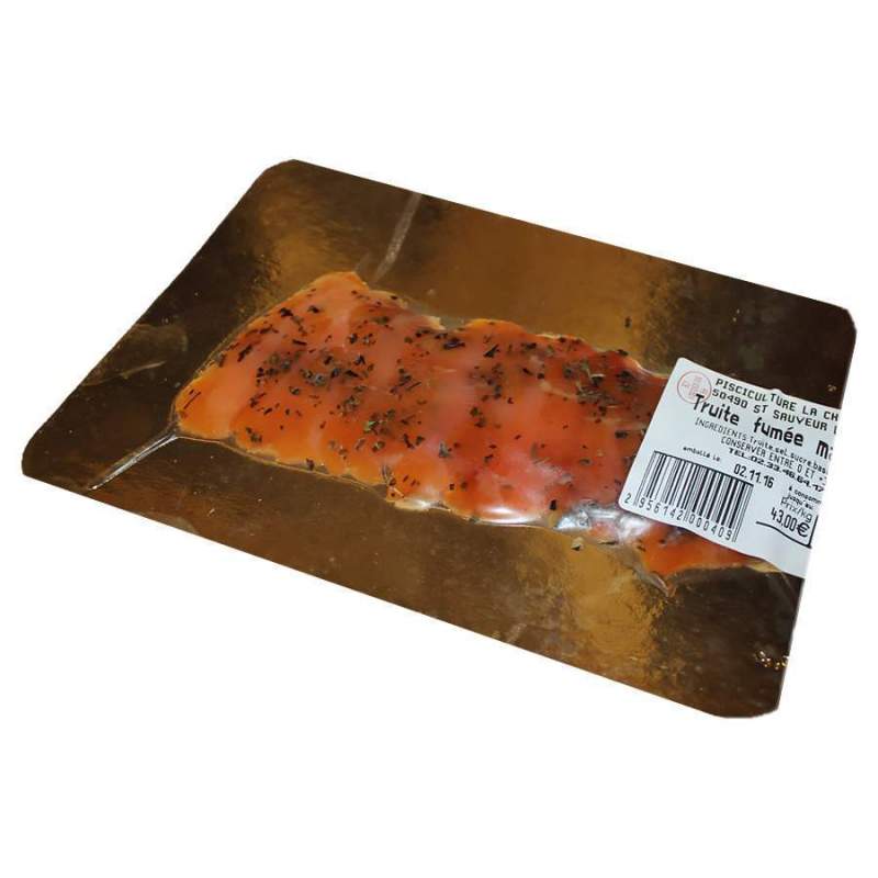 Filet de truite fumée et marinée au basilic prétranché de 140g (+ ou - 5g)