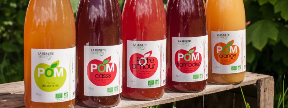 Découvrir le producteurJus de pomme mélangé Cassis Le verger de la reinette 100% pur jus Fabrication artisanale à Préaux du perche (Orne) Issue de l'agriculture biologique