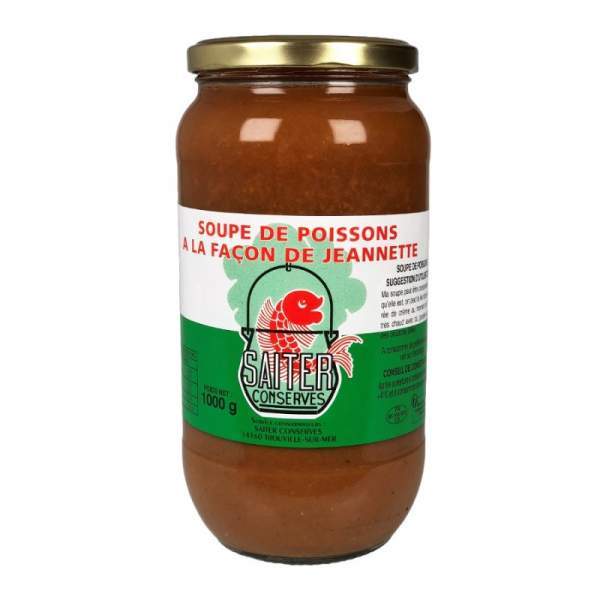 Fabriquée à la poissonnerie Saiter Famille Saiter, pêcheurs de père en fils Soupe de poisson assaisonnée de Normandie Produit stérilisé 800g
